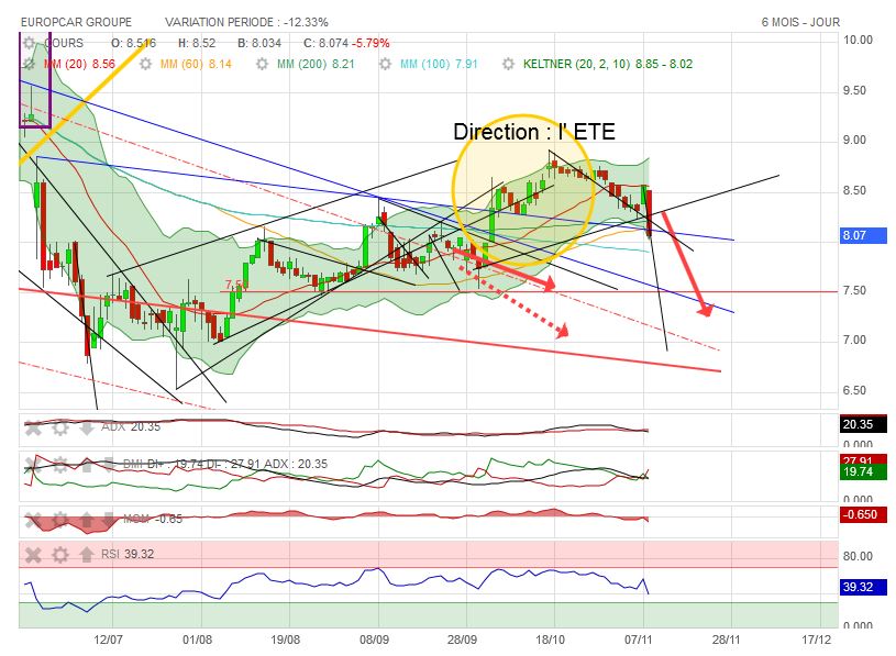 Un retour sur 7.50, puis 7 est envisageable. On attend toujours les suites de l'enquête de l'attente sur les prix visant les loueurs de voitures.