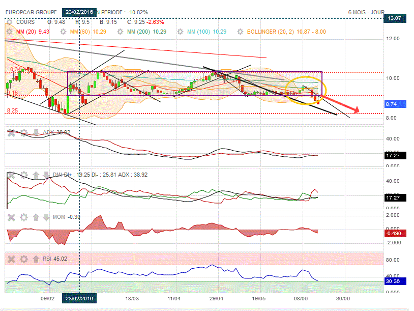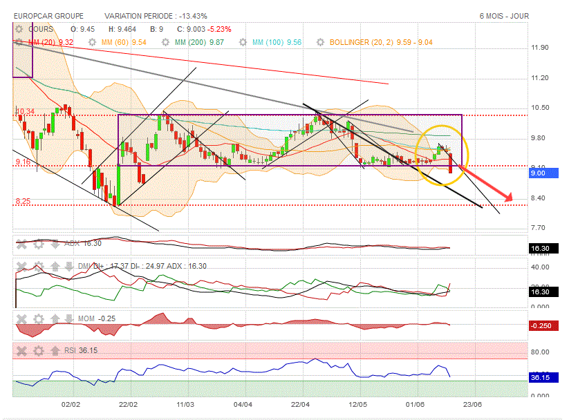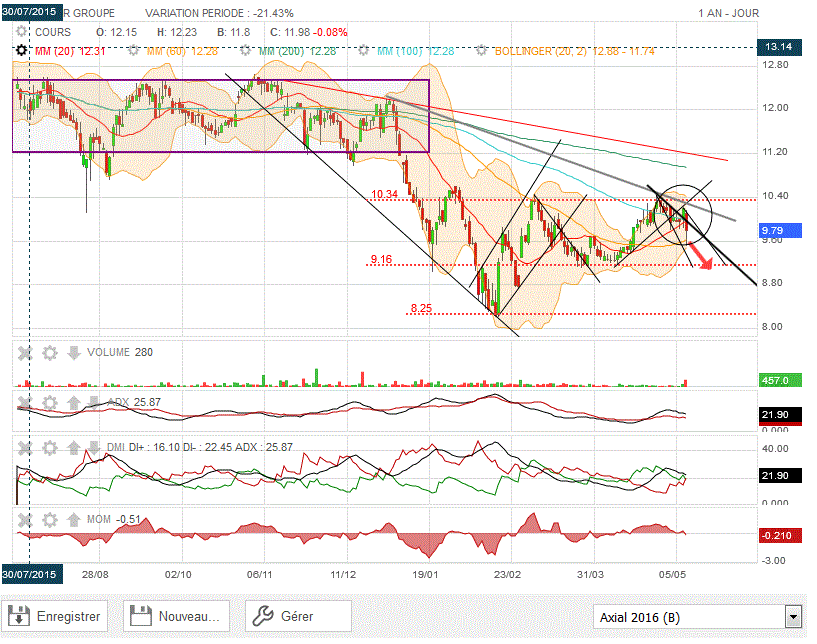 Graphiquement, en 2 séances, on vient de replonger sous la MM100, la MM 60 et la MM 20 : tout est dit, direction la baisse sous 8.40 euros...