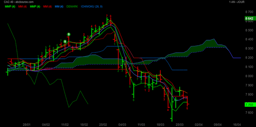 Le CAC pourrait bien aller revisiter 6774, dernier bas significatif, Novembre 2023.