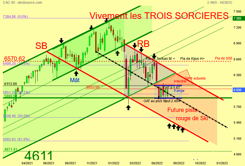 Une zone actuelle interdite est en place , une piste de ski rouge se met en place doucement , le Cac 40 est en sursis avant la reprise de tendance baissière .