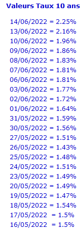 Le 14 juin 2022 , cours actuel du Cac 40 à 5973.46 points pour une OAT à 2.29 %