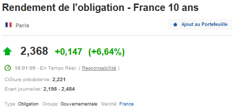 Vous voulez de l' analyse fondamentale , je vous donne celle çi : le taux de l' OAT 10 ans française n' arrête pas de grimper .