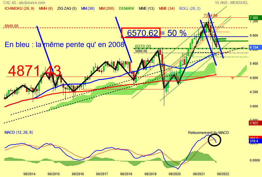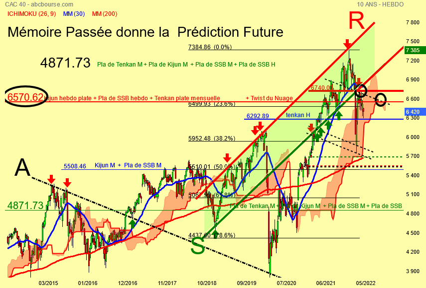 Mais ce qui nous intéresse est le TWIST du nuage mensuel à 4871.43 points ( MEMOIRE PASSEE ) Le Cac ira revoir ces 4871.43 points avant fin janvier 2023 , il reste 8 mois pour atteindre cet objectif baissier .
