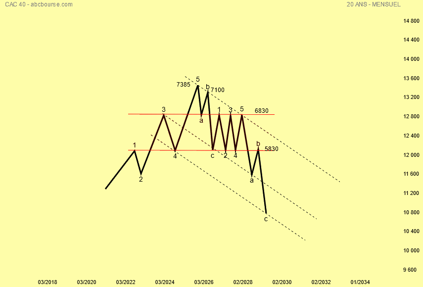 Ensuite probable range qui se mettrait en place doucement entre 6830 et 5830 points un certain temps avant la rechute comme le décris le graphique .