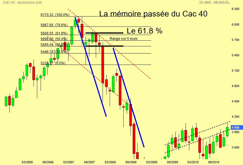 Point haut du Cac à 6170 points puis descente jusqu' à 5223 points et remontée jusqu' au fibo des 61.8 % deux mois consécutif .