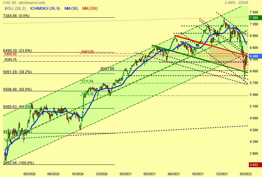 A partir de 6400 points c' est la zone de tous les dangers pour les nouveaux acheteurs , le fibo des 50 % a été rejoint à 6463 points .