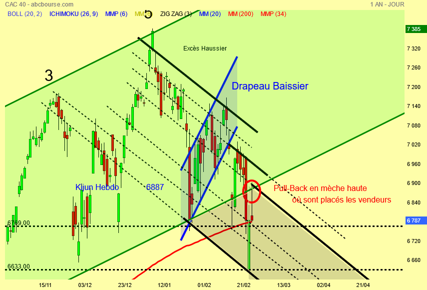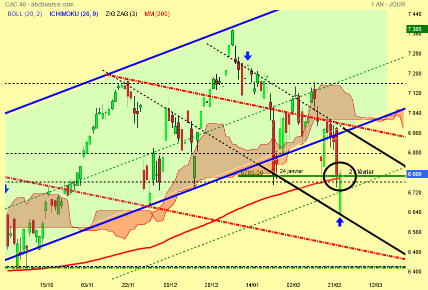 Voilà ce qui s' est passé le 21 février forte baisse qui enfonce la kijun plate et que faut il faire pour le Cac faire son pull-back sur sa kijun et pour cela on commence hier depuis les 6633 points en deux jours ( règle de l' ichimoku ) .