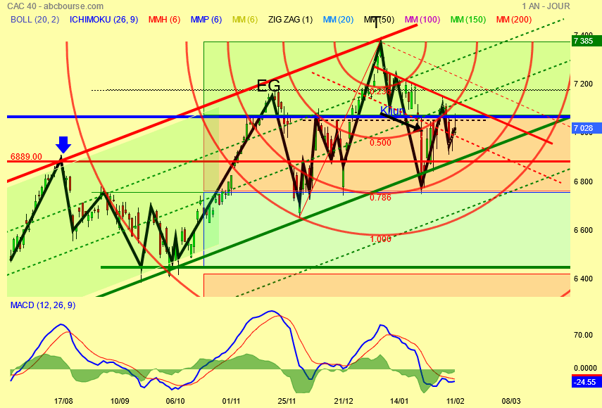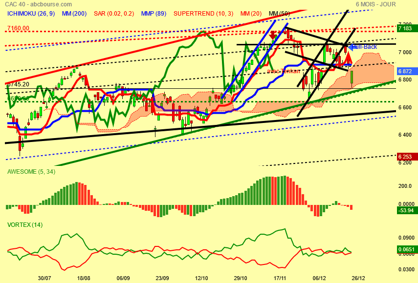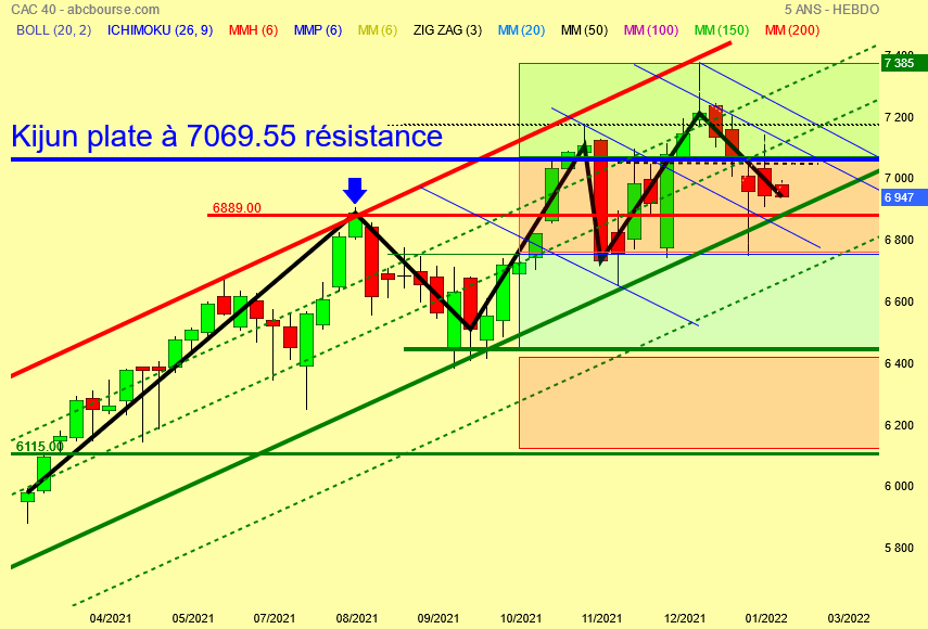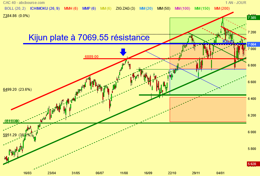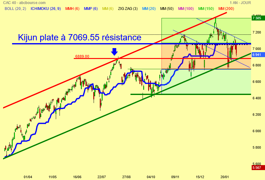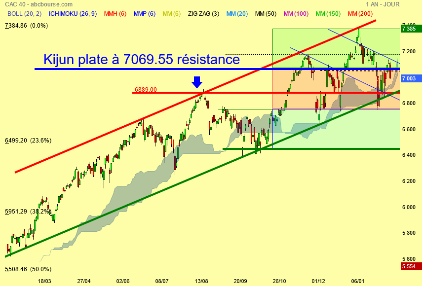 Il est coquin le Cac 40 mais çà ne marche pas avec moi ce rebond car c' est tout simplement écris dans le graphique : Kijun plate à 7069.55 points résistance .
