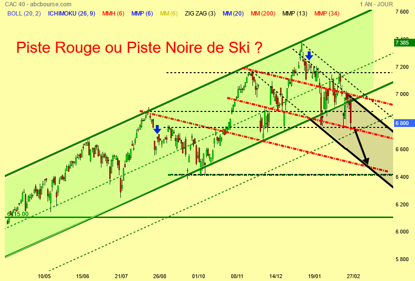 Le passé c' est le canal haussier vert mais le présent il y a deux possibilités de pistes de ski :