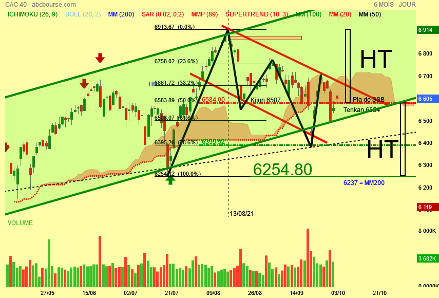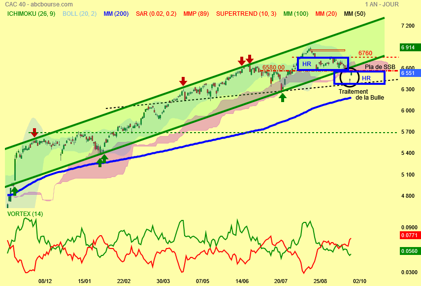 Graphiquement, on doit au moins rejoindre le PB du 19/08 à 6557 (=-1,2%) dans un premier temps.
