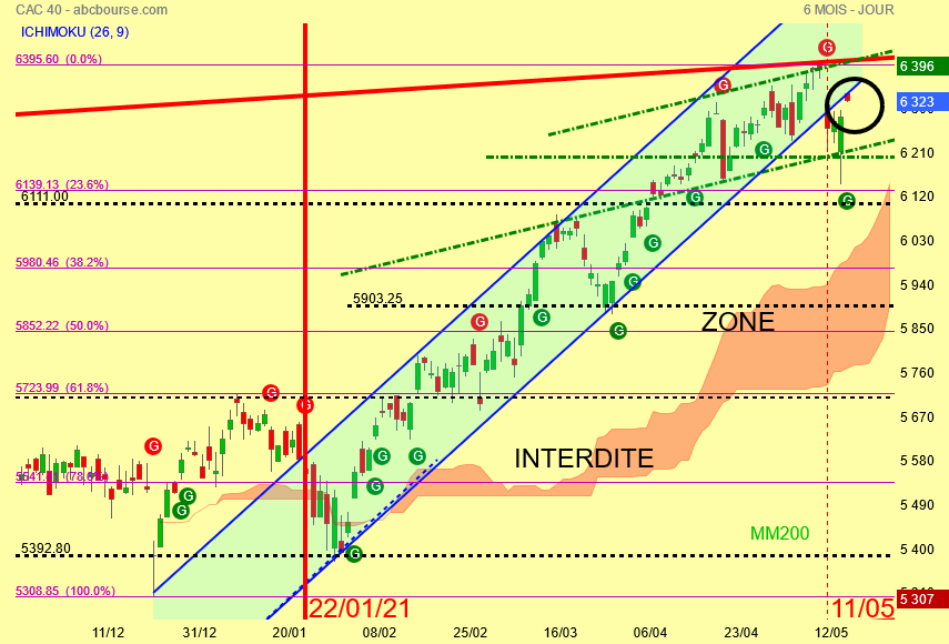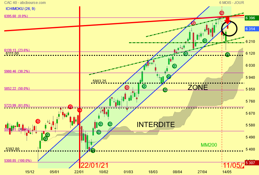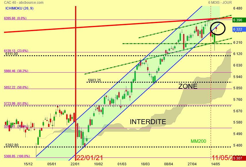 Cours actuel enregistré 6322 points + 0.54 % . Merci au Luxe .