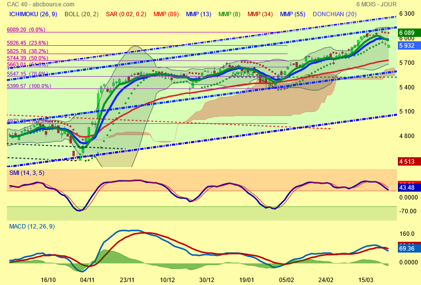Pendant la descente du 19 au 24/03; ils ont encaissés les primes des calls, exercé les puts hier, donc racheté pas cher des call 6080 hier et s'en mettent vraiment plein les poches en vendant des paniers d'actions dans lesquels ils surchargent en poids d'handicap les carnes du moment (expression de JCP) et ils allègent en poids leurs petites actions préférées qui plus légères vont monter (Cf le scénario des courses décrit moultes fois par JCP.)