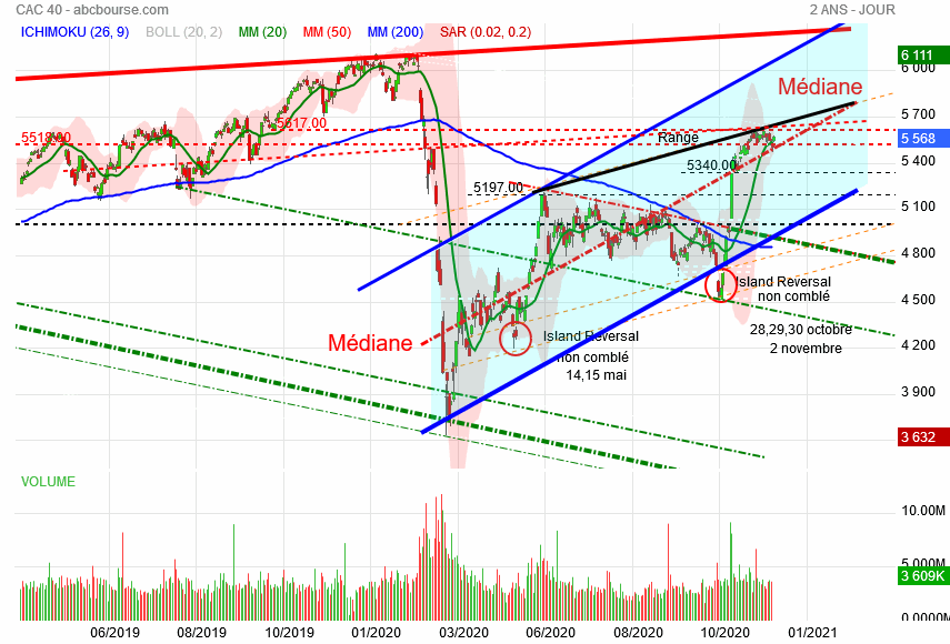 Island reversal non comblé 28,29,30 octobre et 2 novembre 2020