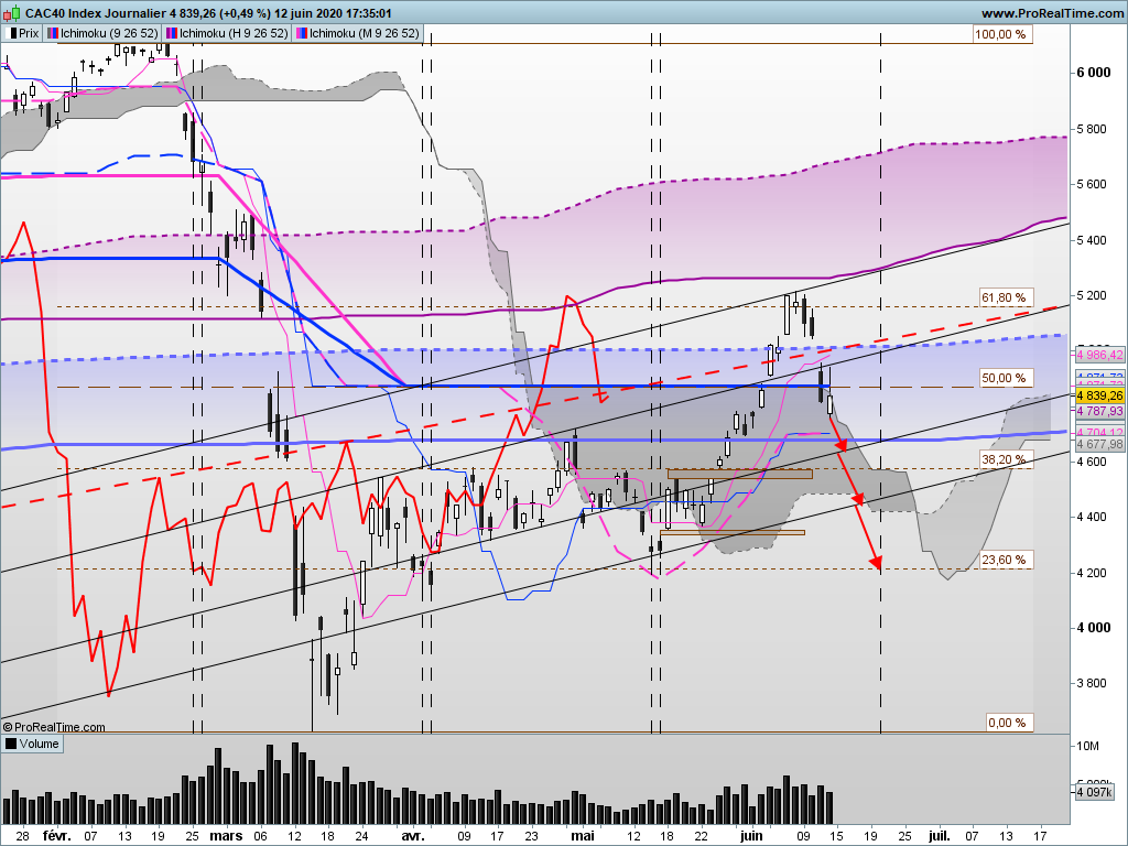 En analyse Ichimoku , du chinois pour la totalité d' entre vous , 4871.73 points est le niveau de prix où se confondent Kijun bleue et Tenkan rouge , niveau de prix de forte résistance , le cours y est donc attiré .