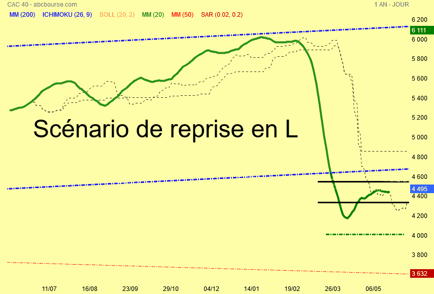 tirelire19 : Je partage pour partie l'analyse. Tout est sous contrôle ! Il ne faut pas perdre de vue que les « milliers de milliards » vont aussi soutenir l'emploi. La hausse du chômage est certaine, néanmoins elle ne devrait pas s'inscrire dans la durée. Pour aider un débutant à se constituer un portefeuille, il serait plutôt à conseiller de mettre des stops seulement sur ce qu'il a acheté le plus cher, pour investir à nouveau sur une baisse. Tout en conservant le reste ! À considérer le comportement d'une action sur un temps long, les variations sont parfois trompeuses. Pour ne citer qu'un exemple : URW !... La durée, avec dividendes réinvestis, est plus souvent porteuse en bourse que le trading à court terme.