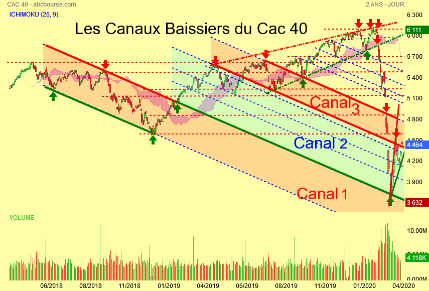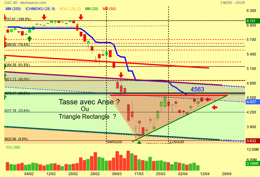 Si le Cac 40 poursuit sa remontée en direction des 4871 puis des 5164 points alors , cela signifierait anticipation de reprise des activités donc de la croissance , n' oubliez pas que le confinement va être prolonger de 15 jours ou plus ,tout dépendra maintenant si les hôpitaux se vident , le temps nécessaire à trouver des masques pour tous , des tests pour tous , beaucoup de conditions à remplir pour que le déconfinement soit une réussite , faudra pas se planter .