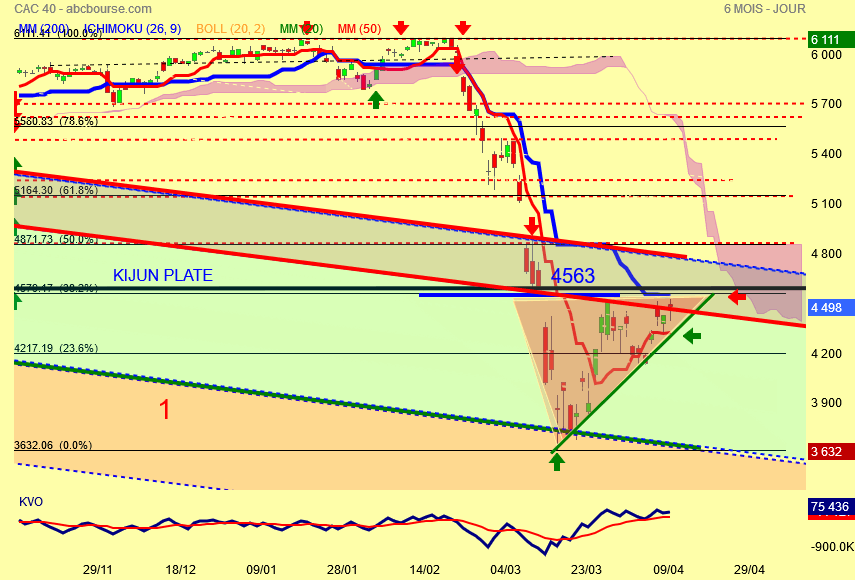 La Kijun bleue est plate située à 4563 points , attire le cours du Cac 40 vers elle .