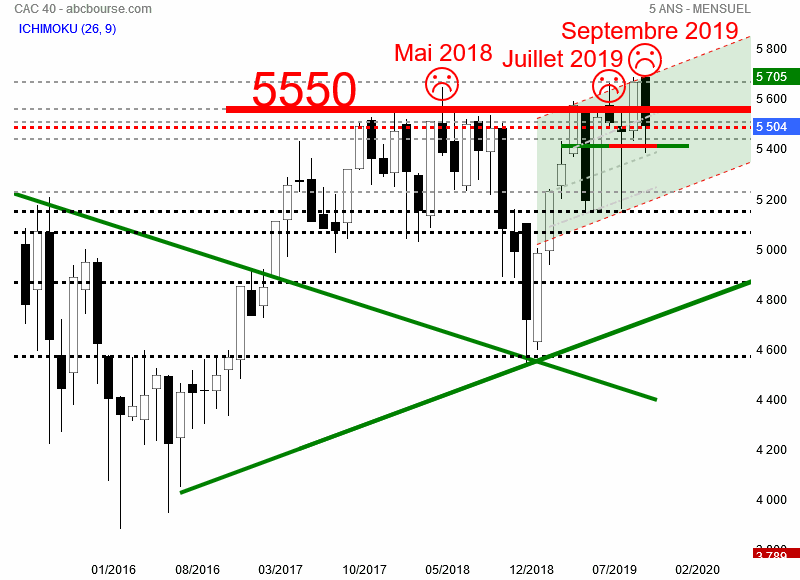 Les "fausses sorties haussières" de mai 2018, juillet et septembre 2019 correspondent à des rachats (prise de bénéfice) sur mon FCP. Ce dernier réplique les performances du CAC40. Halluccinant...