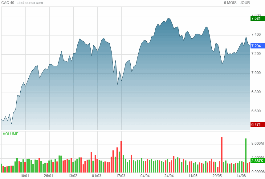 Le volume dépend aussi du prix; Le cac40 est encore à 7290 points (plutôt haut en vue 1 an/ 3 ans/ 5 années...