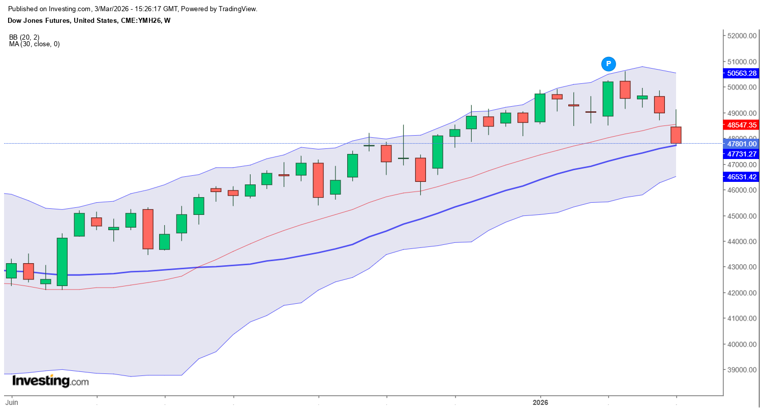 cette bougie en nuage noir tombe à pic pour que le cours se rappelle de la mm30 vers 47000/48000 ?