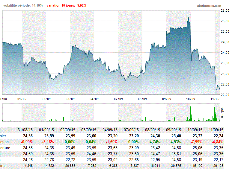 Cours | Graphes | News | Analyses et conseils | Société | Historiques | Vie du titre | Secteur | Forum |