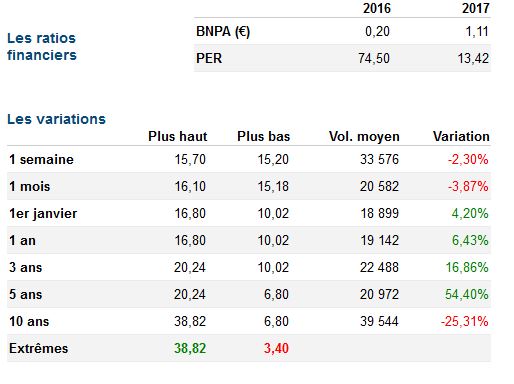 Cours | Graphes | News | Analyses et conseils | Société | Historiques | Vie du titre | Secteur | Forum |