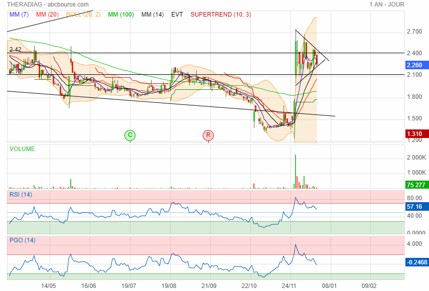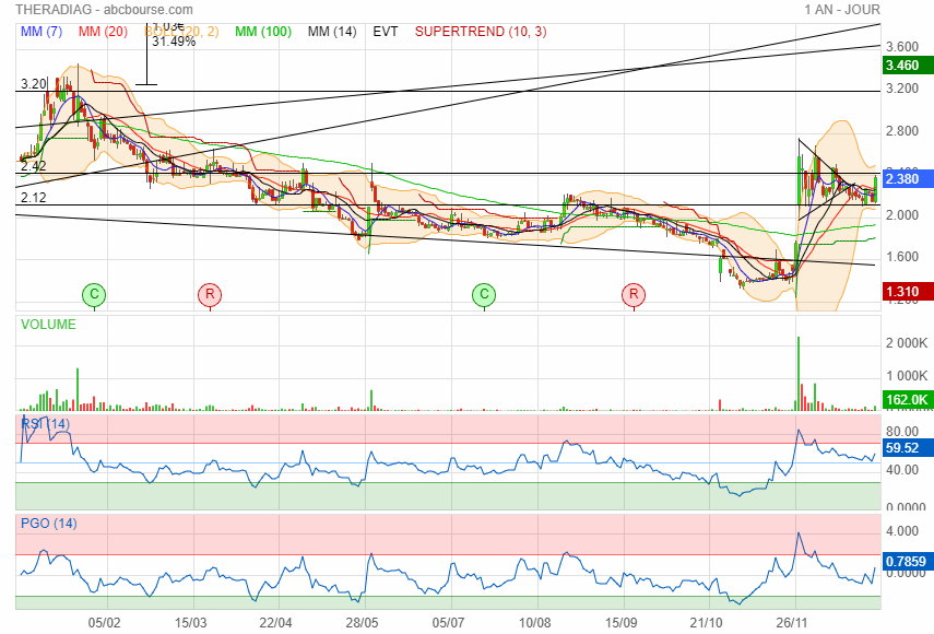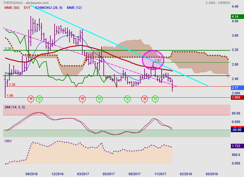 grosse chute du cours Théradiag ce jour à la suite de la communication d'hier. Rupture des derniers plus bas