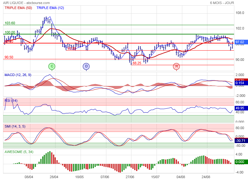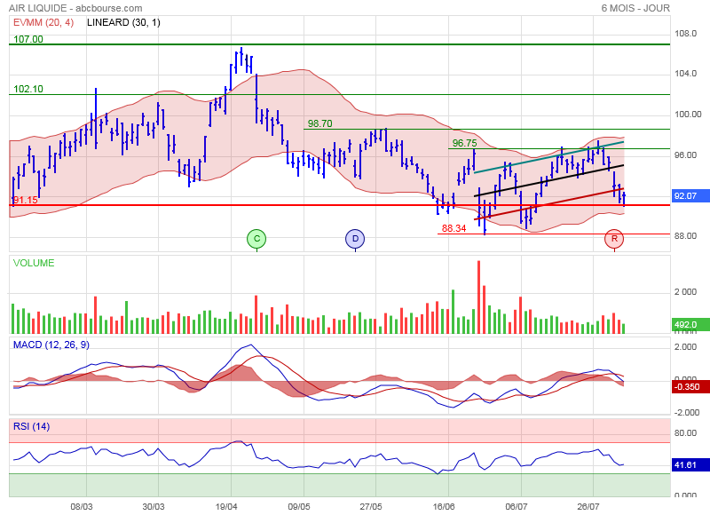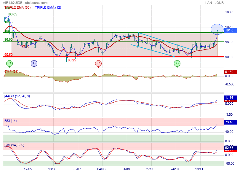 L'objectif psychologique des 100E est évidemment à portée mais le titre s'arrêtera t'il là puisque la prochainhe résistance se situe vers 106E.