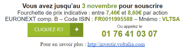 Le cours du Real Brésilien s'est redressé, le cours de VOLTALIA baisse.