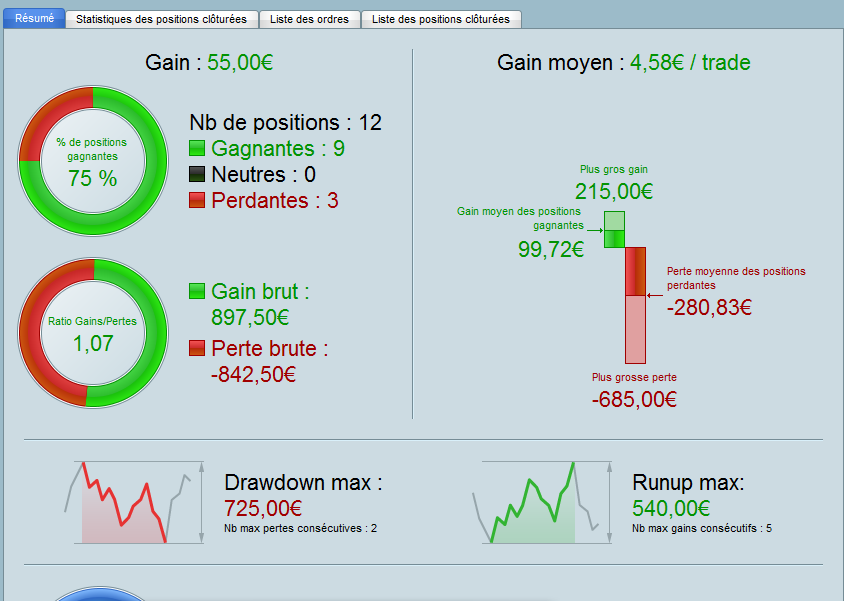 Ce qui est étonnant, c'est que le même algo, qui a un TP plus éloigné réalise de bien meilleurs performances (trades perdants moins importants).