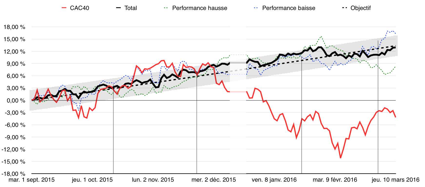 Couloir noir de ±2,5% suivant objectif (≈25% annuel)