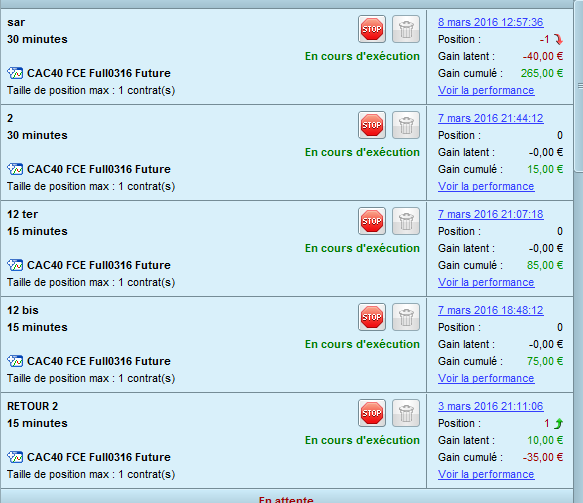 De mon coté j'essaie juste de trouver un programme qui fasse régulièrement des gains. Pour l'instant je patine contrairement à Adriasto qui en a au moins un qui fonctionne assez correctement.