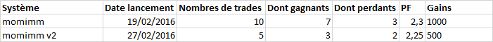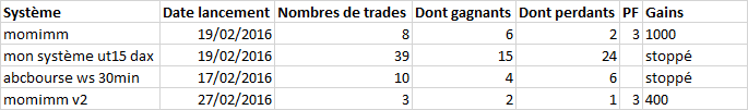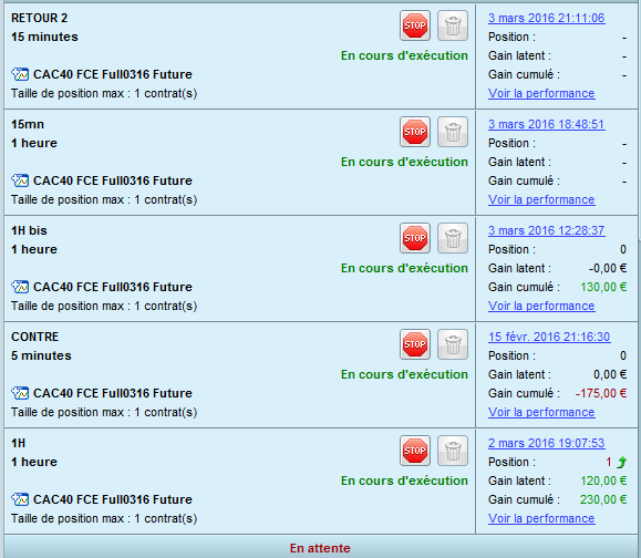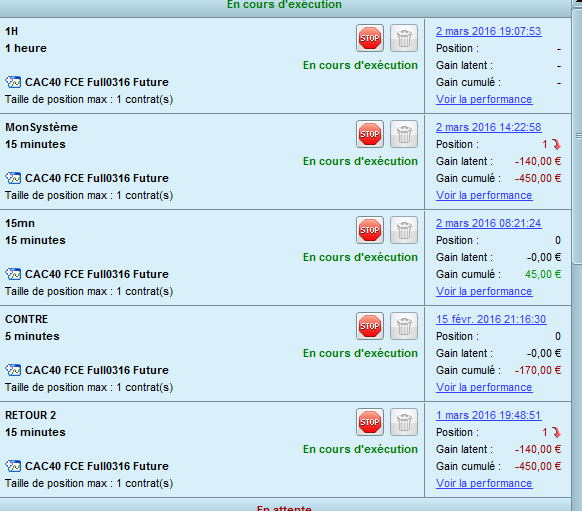 G supprimé 2 autre qui n'ont pas eu de bons résultats et je les ai remplacé par d'autres améliorés (RETOUR 2 et 15 mn version 1H) avec qui j'espère avoir de meilleurs résultats ...