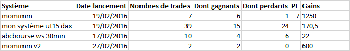 En attendant voilà les résultats cumulés. J'ai arrêté les systèmes qui généraient trop de perte, comme ce n'est pas ce que l'on cherche.