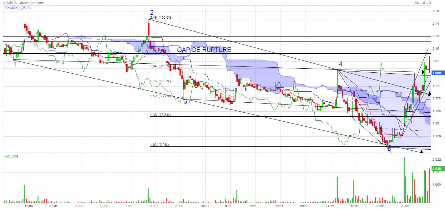 Le titre n'a,jusqu'à présent ,pas réussi à INVALIDER LE GAP DE RUPTURE et semble etre mus pour une correction technique au vu de l'englobante baissière++CLAUDIUS