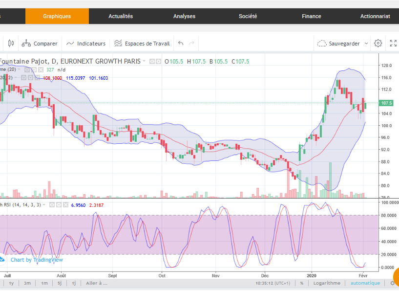 Le graphique nous montre que la stochastic-Rsi est prête à porter les cours vers les 115€, dans un proche avenir..