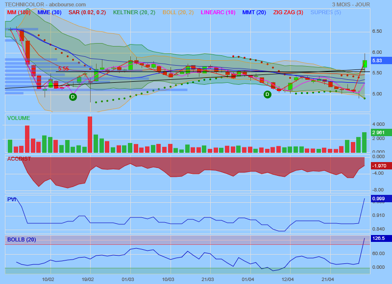 Cours | Graphes | News | Analyses et conseils | Société | Historiques | Vie du titre | Secteur | Forum |