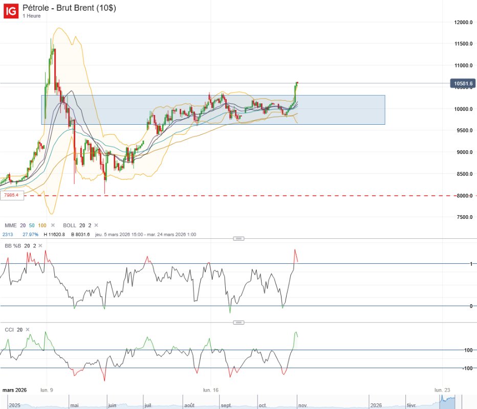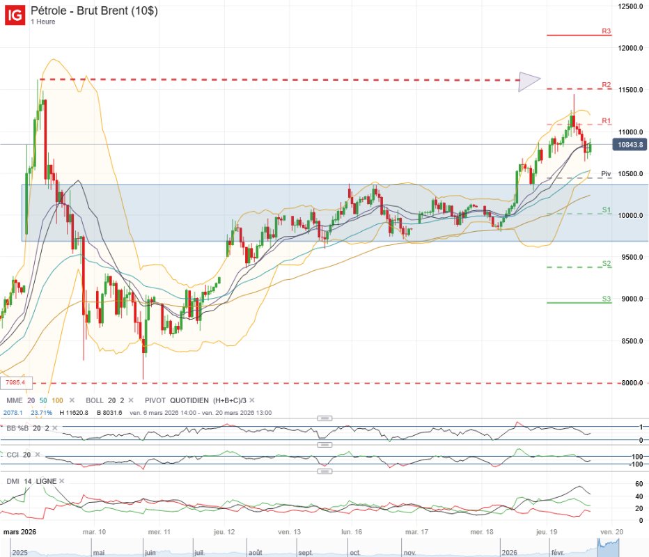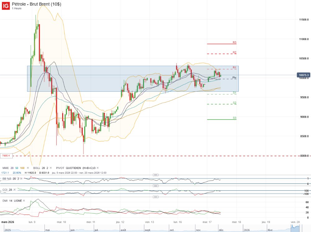 Et donc à l'instant T, le Brent contracte de nouveau à la baisse.