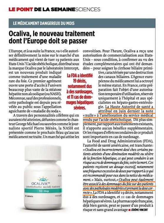 <p>Au moins côté OCA sur la Nash en Europe , le débat est déjà entendu ..... vu les risques ET l'absence de bénéfice thérapeutique</p>