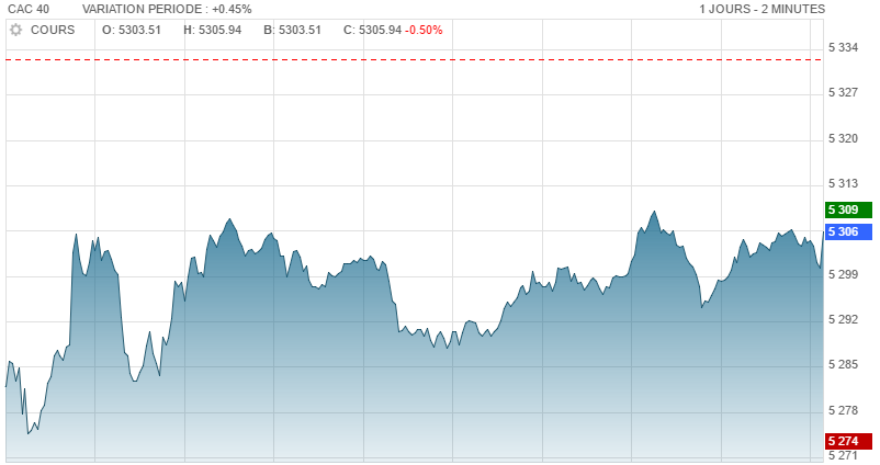 Lorsque vous affichez le graphique avec 1 journée de données en intraday, vous avez désormais le niveau du cours de la veille qui apparait sous forme de ligne pointillée rouge. Ca peut servir