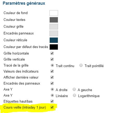 Graphique ABC : désactiver le cours veille en intraday
