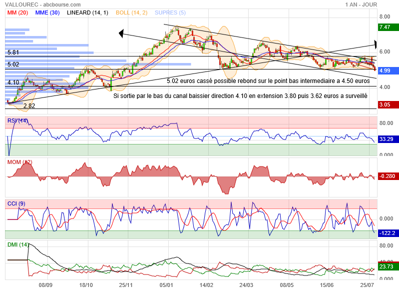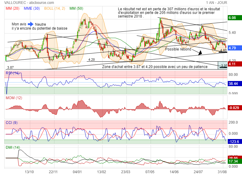 le titre navigue proche des 4.60 /4.50 euros qu'il faut tenir pour rebondir et ne pas dérivé vers les 3.95/4.00 euro