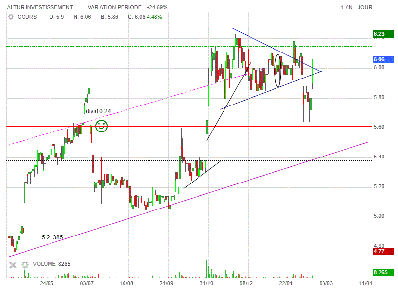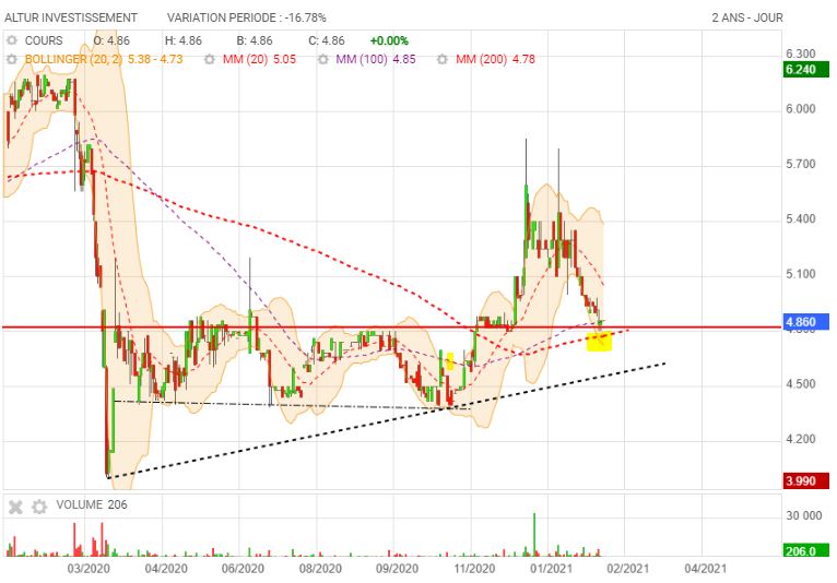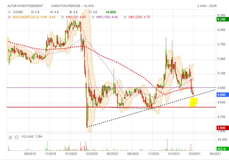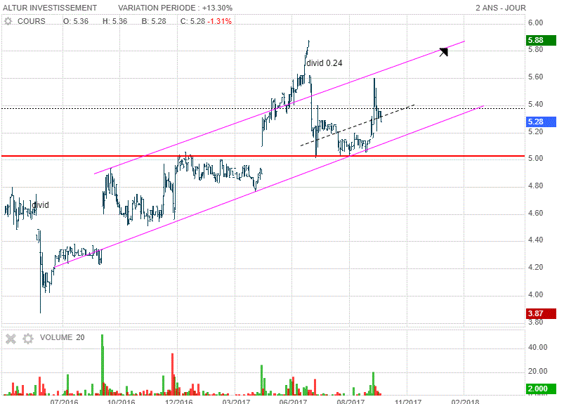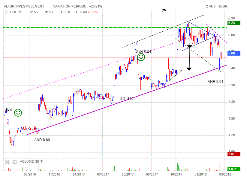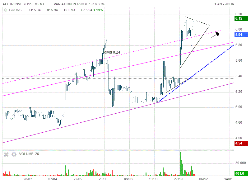 Pour ma part, la suppression du dividende ne me gêne absolument pas dans la mesure où ce cash permettra peut être de se positionner sur des opportunités d'investissement et ne pas laisser en décrépitude les sociétés dans le portefeuille d'Altur qui pourraient en avoir besoin.