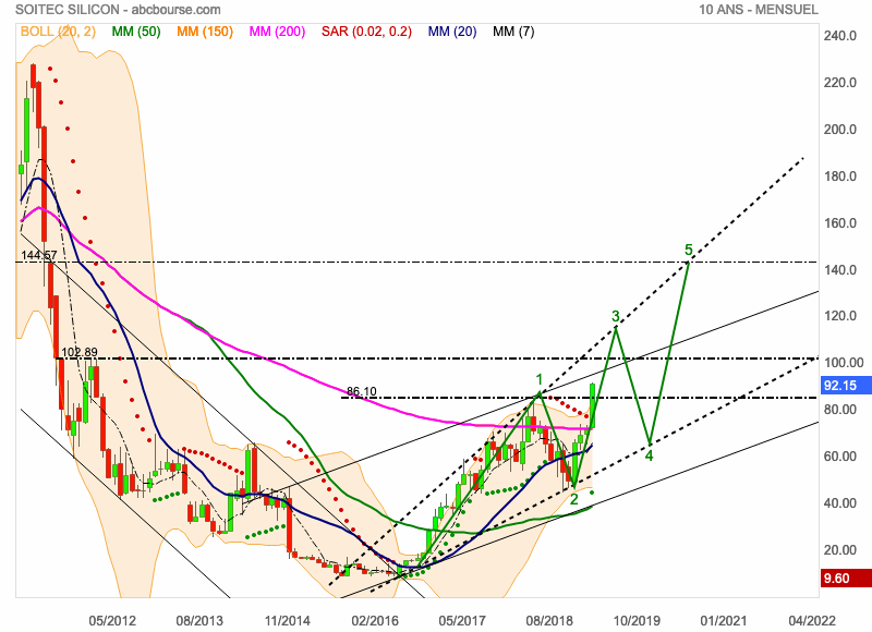 Je vous met ce petit graph qui ne tien pas compte des fondamentaux de cette société, mais juste de l'analyse psychologique