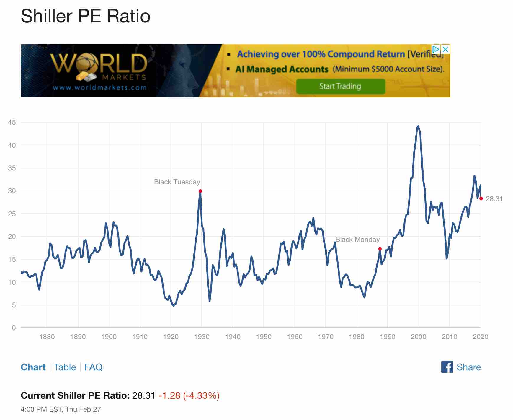 Current Shiller PE Ratio: 28.31 -1.28 (-4.33%)