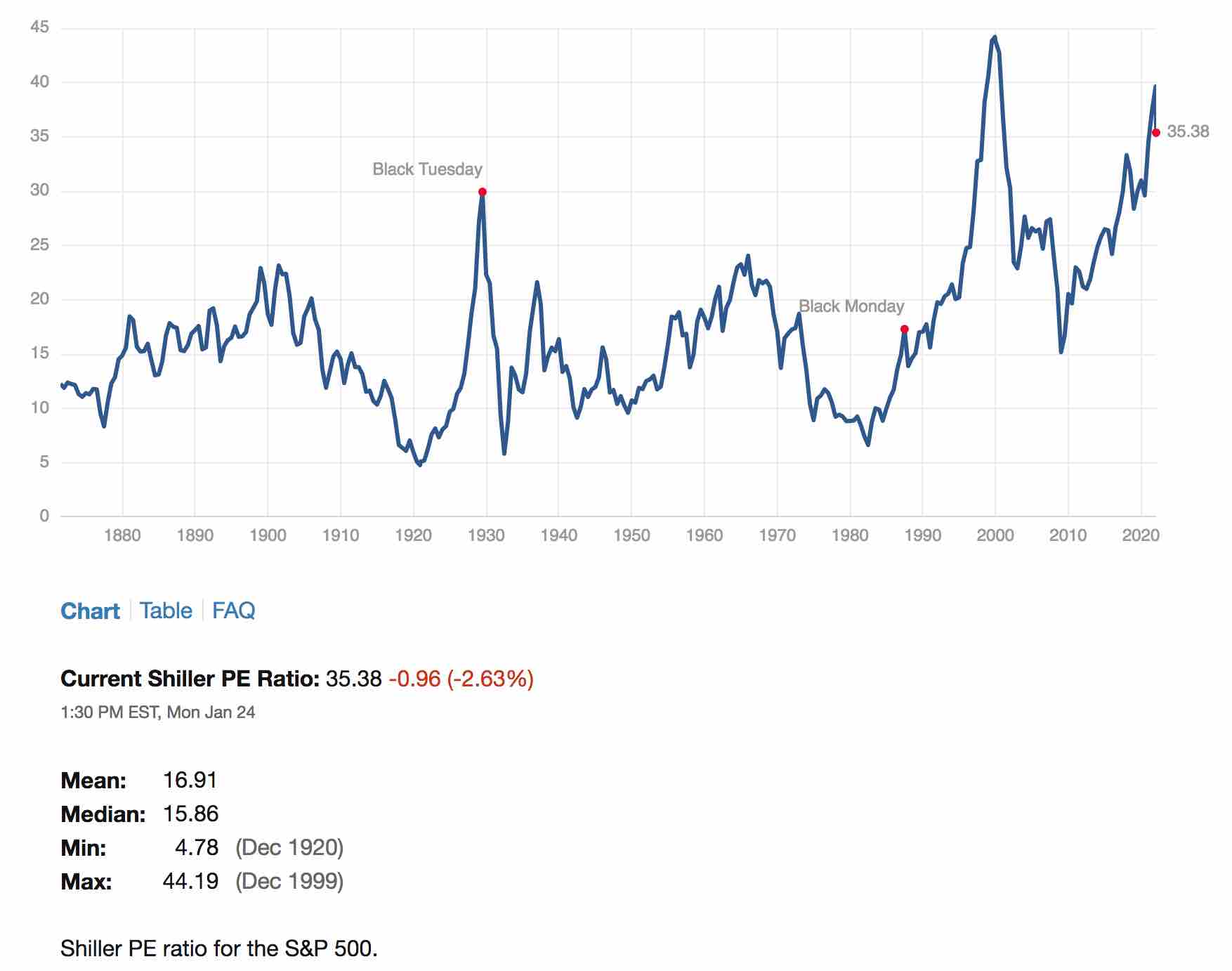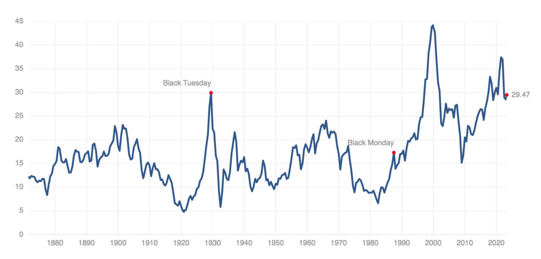 Le pic de l'indice Shiller PE Ratio a tenu toutes ses promesses en terme de baisse sur 2022.