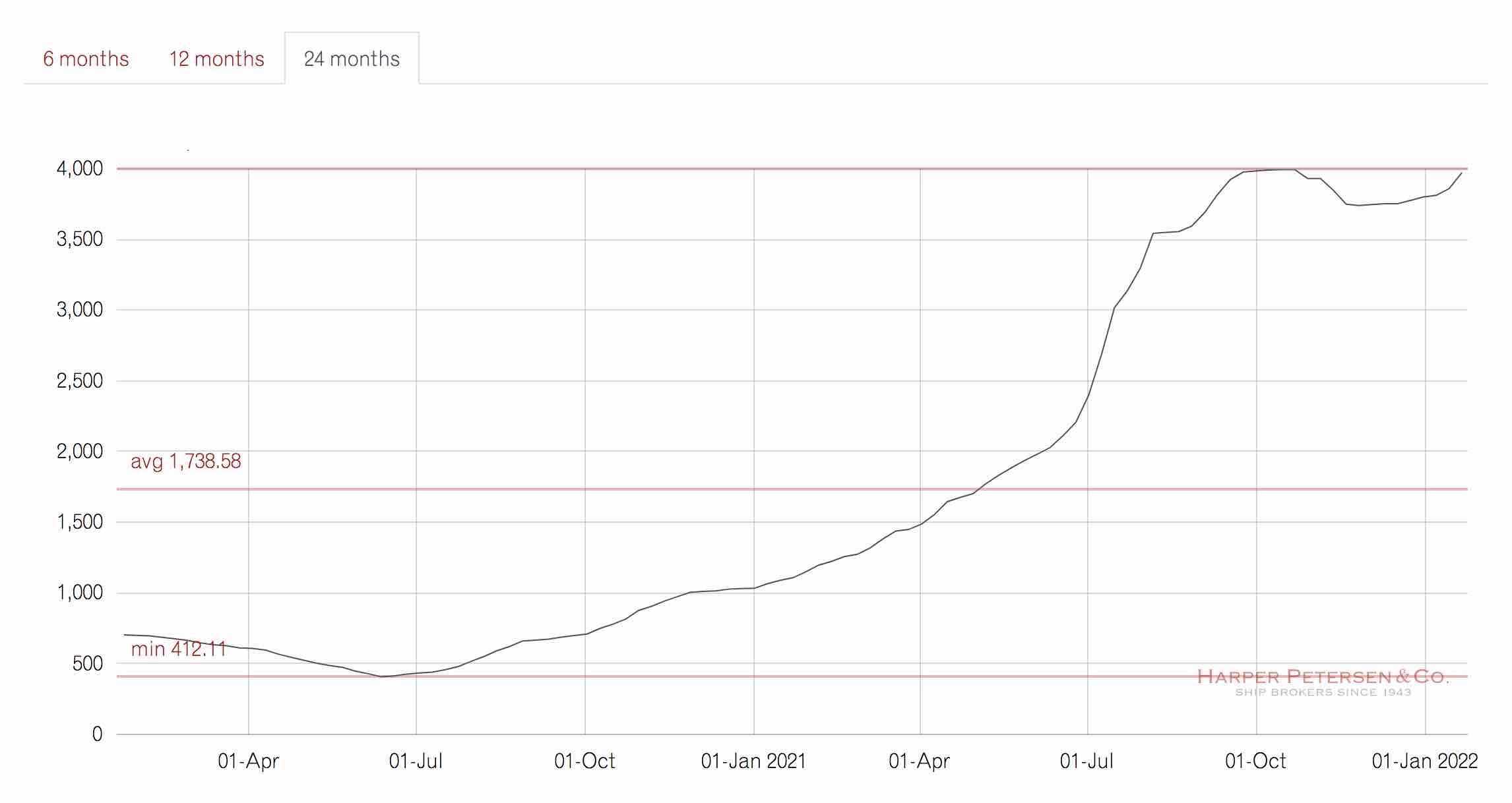Avec le printemps et l'inflation, il est potentiellement probable que le HARPER PETERSEN Charter Rates Index dépasse les 4000 d'ici ce printemps.