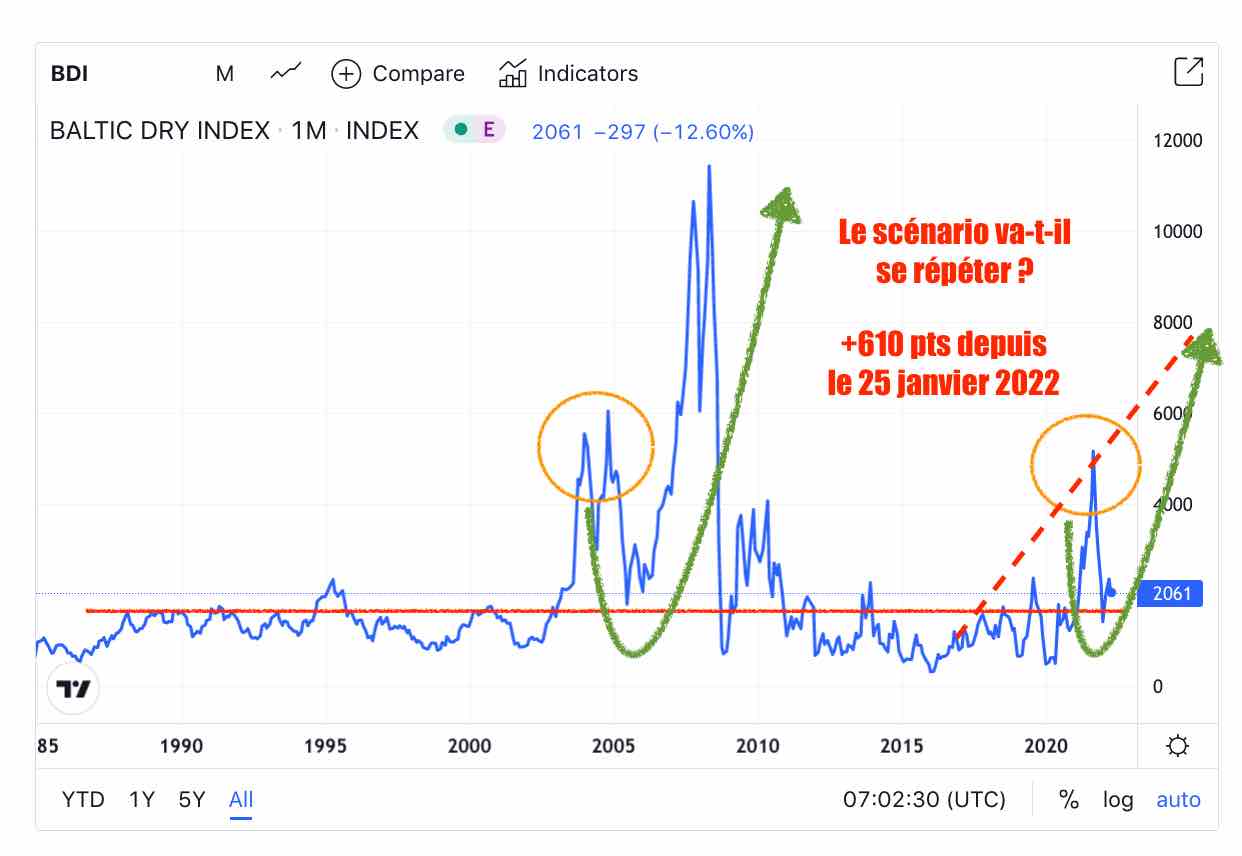 Le Baltic Dry vient de prendre +48,16% depuis le 25 janvier, et pour l'instant on va dans le sens de ce qui était annoncé dans la file.