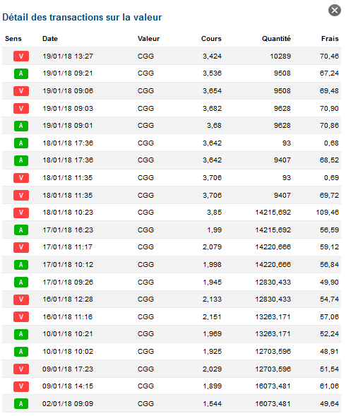 il y a eu des variations importantes sur l'action et on compte les points a la sortie