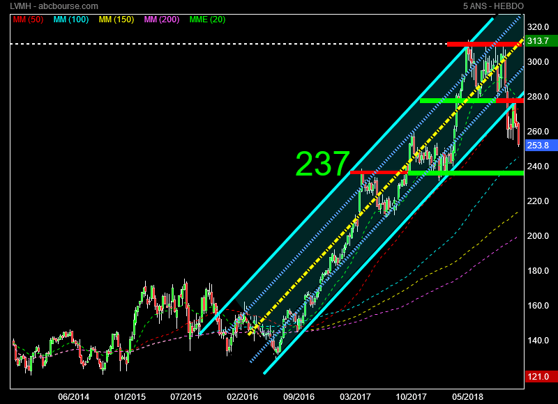 Conclusion : Depuis le 21 mai 2018 , LVMH plafonnait sur son plus haut malgré de très bons résultats , quant au Cac 40 lui recule donc ce sont bien les valeurs du Luxe qui en se maintenant ont évité une baisse plus marquée du Cac.